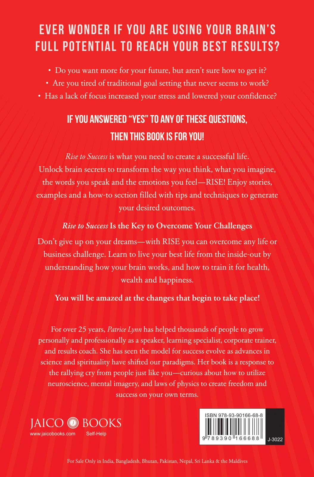 Rise to Success is what you need to create a successful life. Unlock brain secrets to transform the way you think, what you imagine, the words you speak and the emotions you feel—Rise! Enjoy stories, examples and a how-to section filled with tips and techniques to generate your desired outcomes.