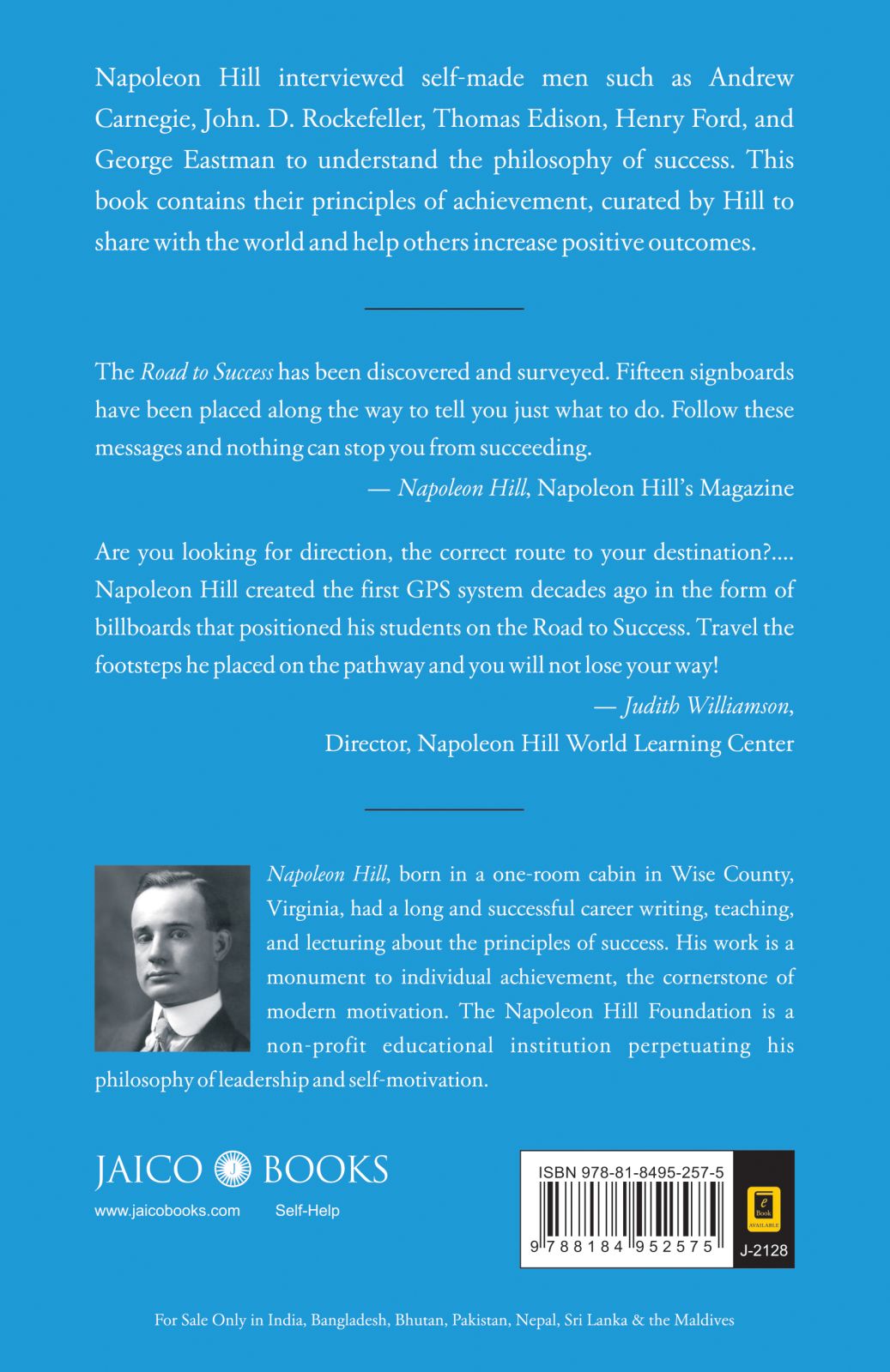 Napoleon Hill interviewed self-made men such as Andrew Carnegie, John. D. Rockefeller, Thomas Edison, Henry Ford, and George Eastman to understand the philosophy of success. This book contains their principles of achievement, curated by Hill to share with the world and help others increase positive outcomes.